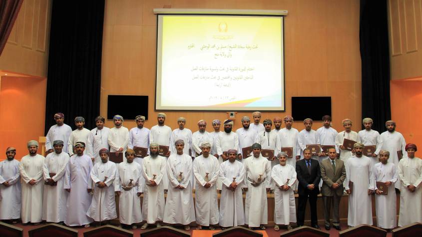 تحت رعاية سعادة الشيخ/ مسلم بن محمد الوحشي (والي ولاية منح) وبحضور الدكتور/ نبهان بن راشد المعولي (عميد المعهد)، اختتم المعهد العالي للقضاء الدورة القانونية في بحث وتسوية منازعات العمل لمجموعة من الباحثين والمختصين ببحث منازعات العمل بوزارة القوى العاملة وذلك في إطار البرنامج الوطني لتعزيز التنويع الاقتصادي (تنفيذ).